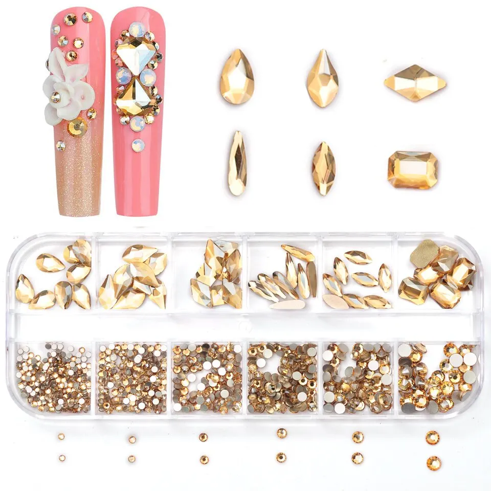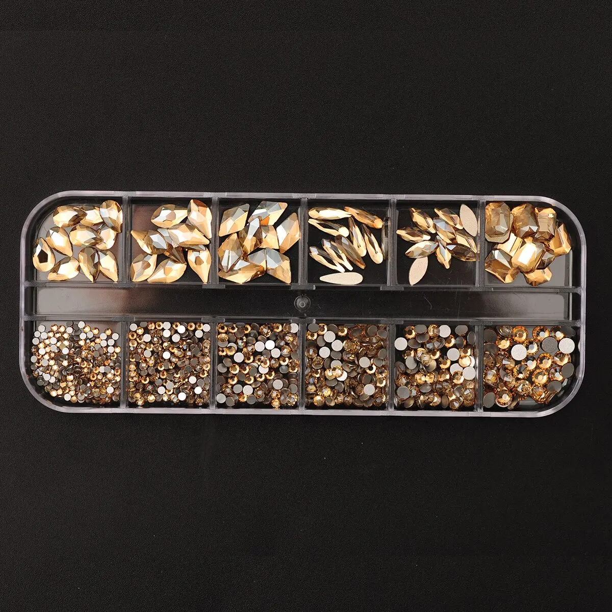 12 Grids Golden Shadow Flatback Rhinestones Glitter Nail