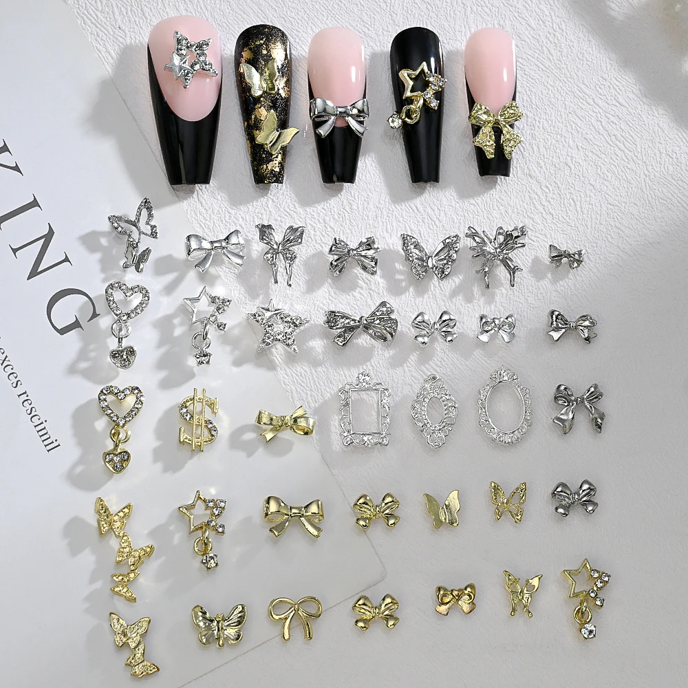 120pcs/box 3D Gold Bow Butterfly Nail Metal Charms Shiny Cute Bowtie/Diamond Star Nail Jewelry 120pcs Luxury Nail Art Supplies