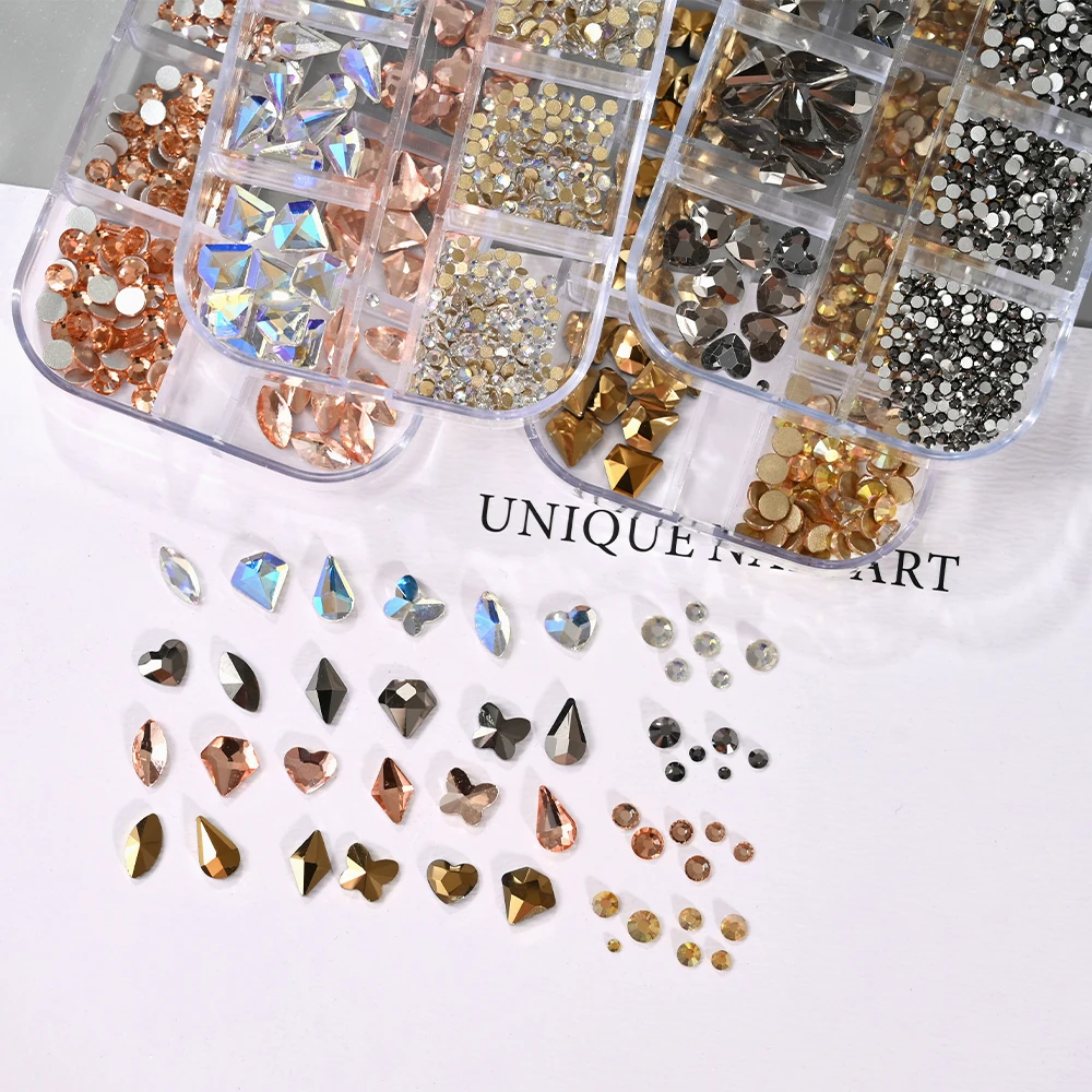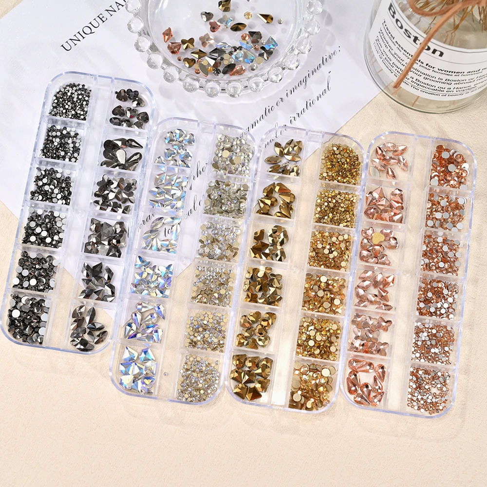 12Grids Mixed-Shape Crystal Nail
