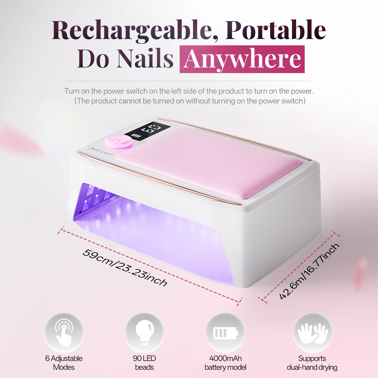 1.4000mAh rechargeable model, no wiring required, no regional restrictions, can be used for nail art anywhere.