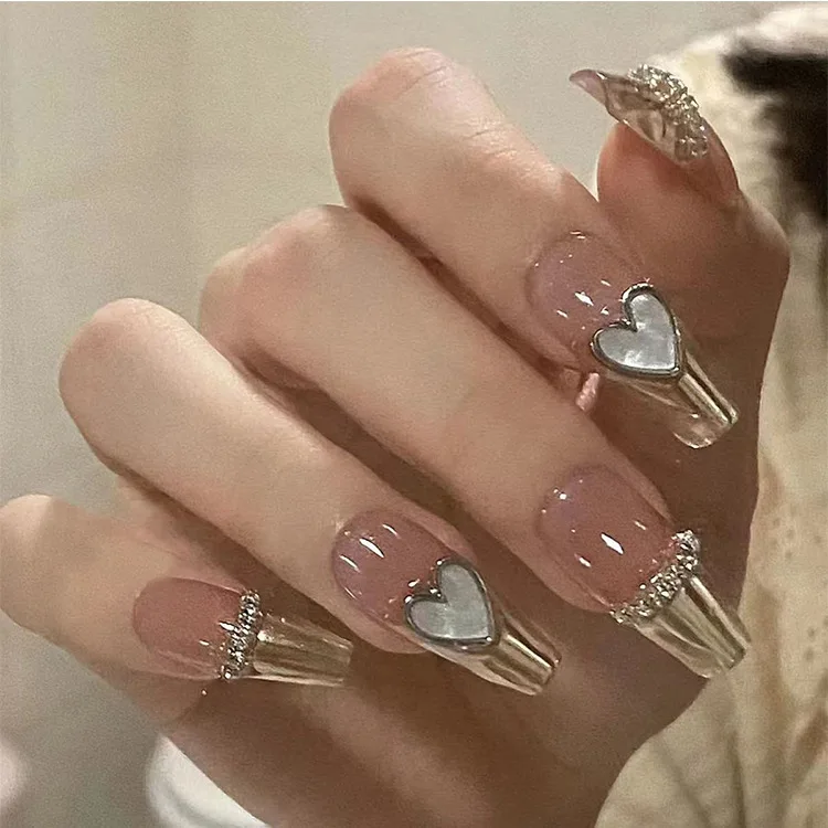 24Pcs/SET French Ballet Blue Moon Sailor False Nails With Star/Moon/Water-Drop Alloy Press on Nails Tips Full-Cover Fake Nails