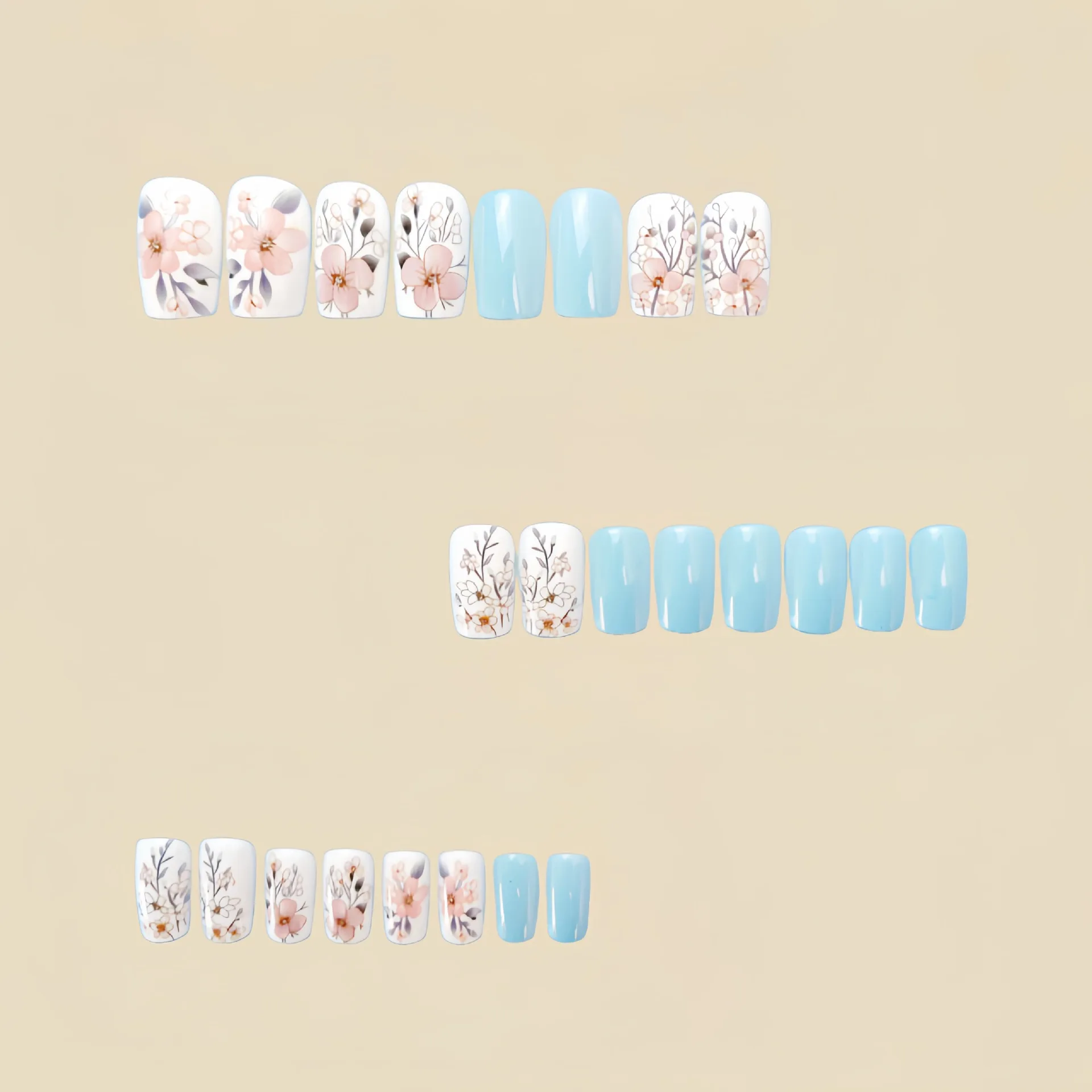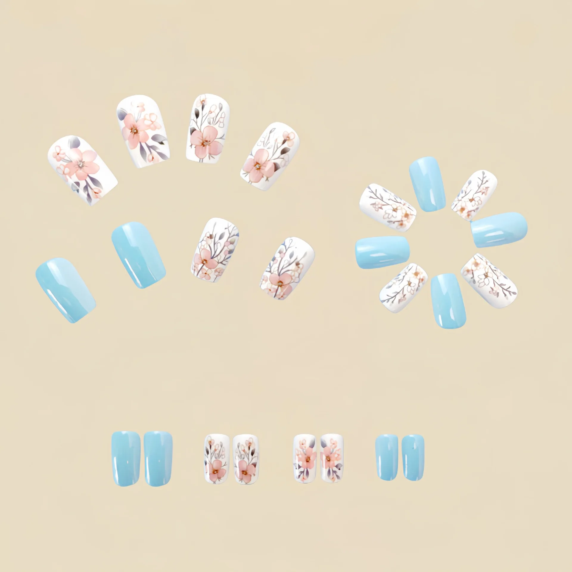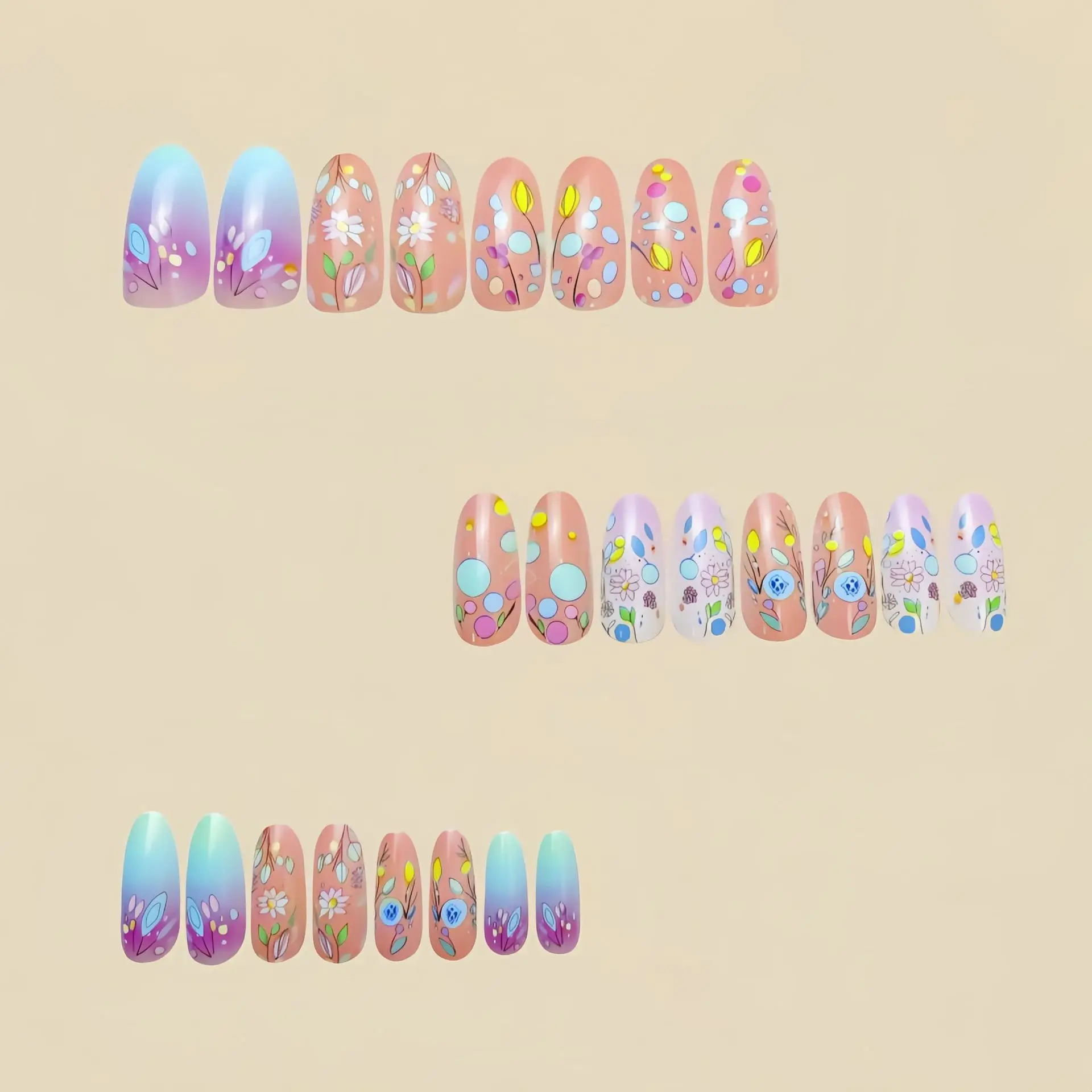 fake nails style: Spring summer flowers nails,Short Medium nails