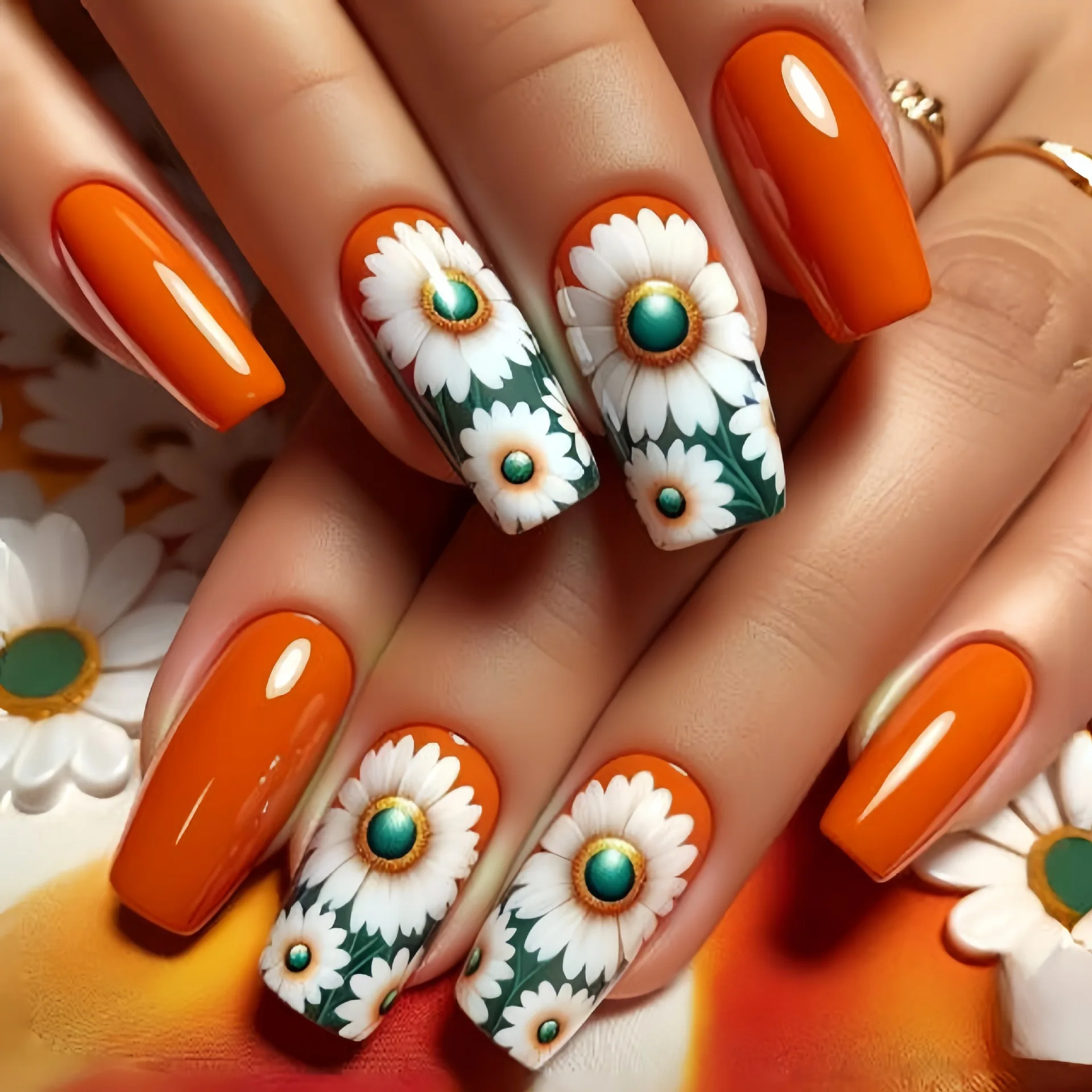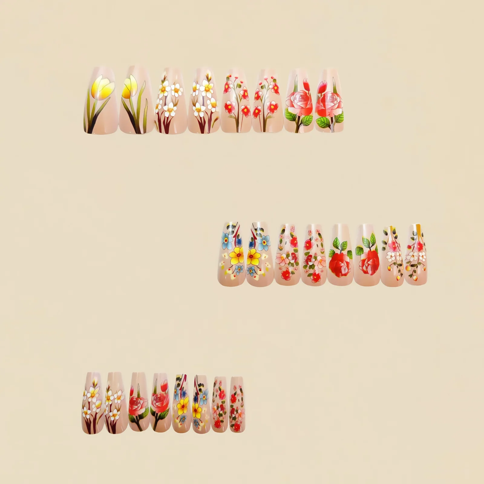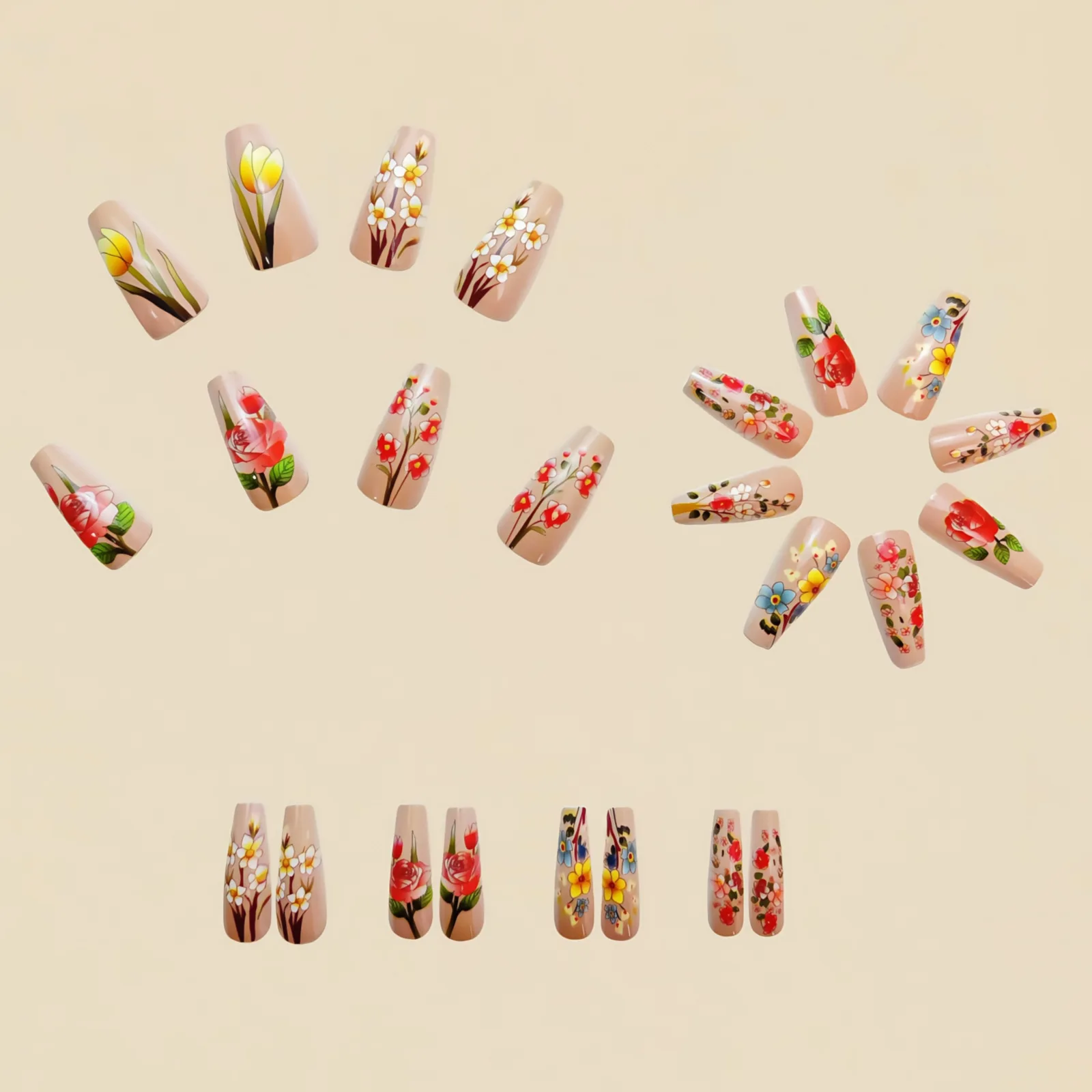 fake nails style: Spring summer flowers nails,Short Medium nails