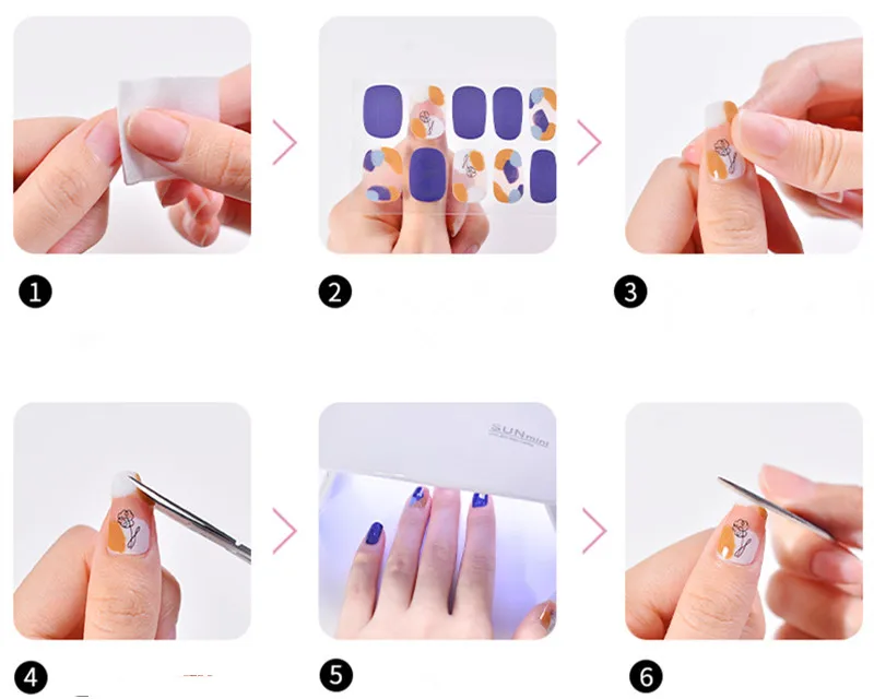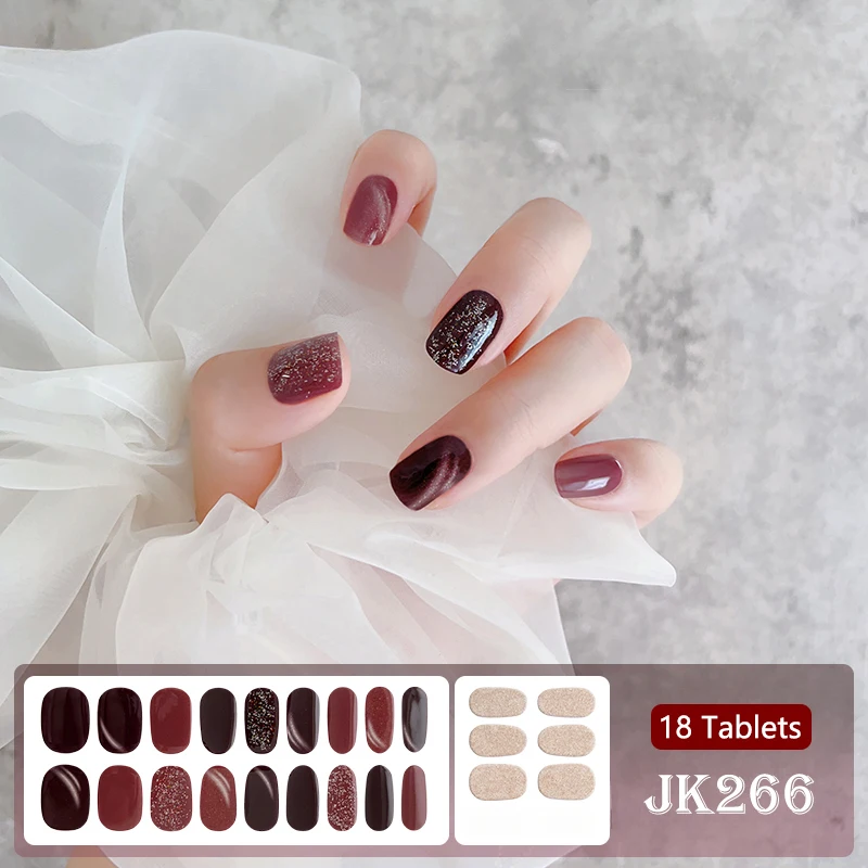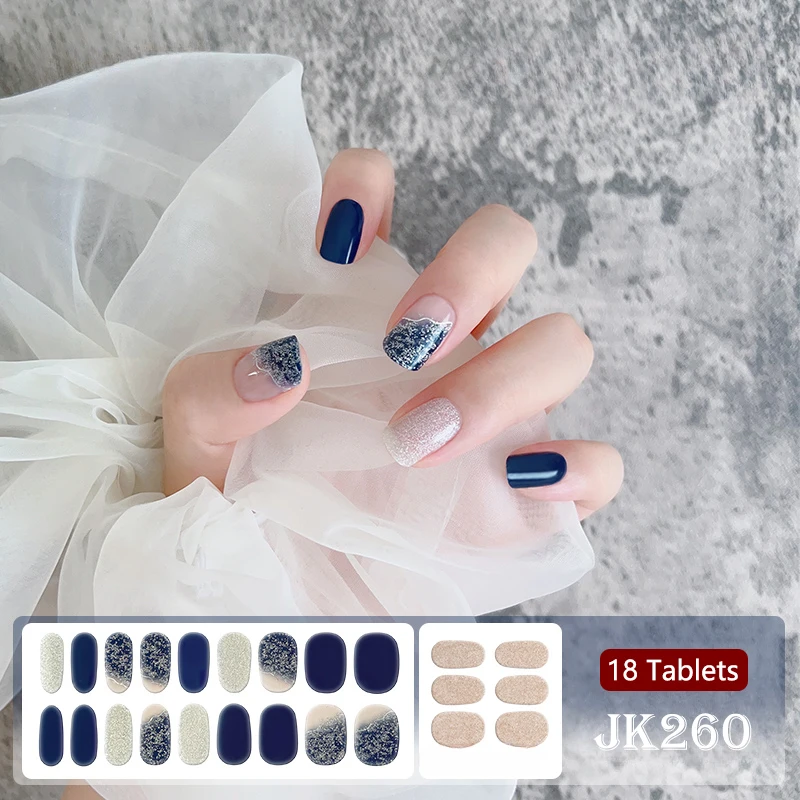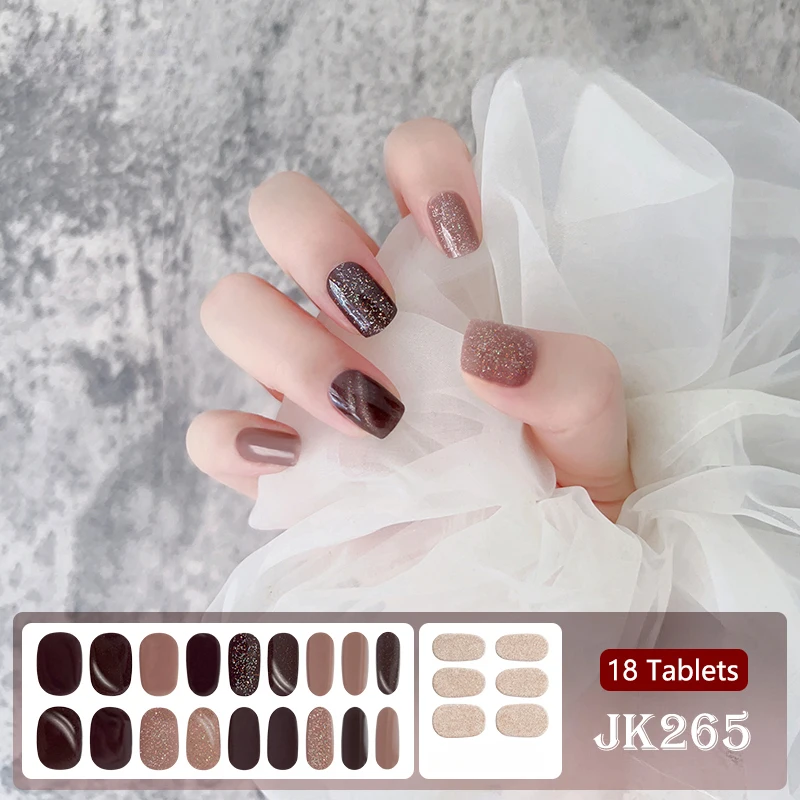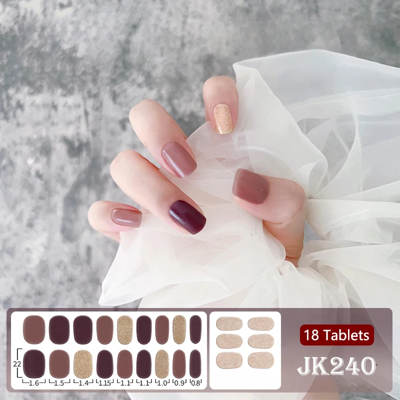 24Tips/Sheet Multicolor UV Semi-Cured Gel Nail Patch Gradient Nude Adhesive Slider Long Lasting Nail Art Stickers DIY Manicure