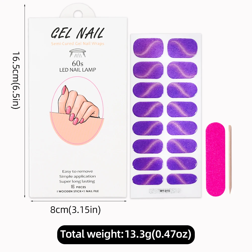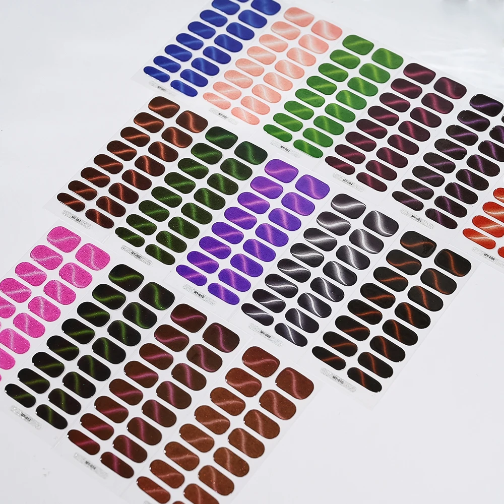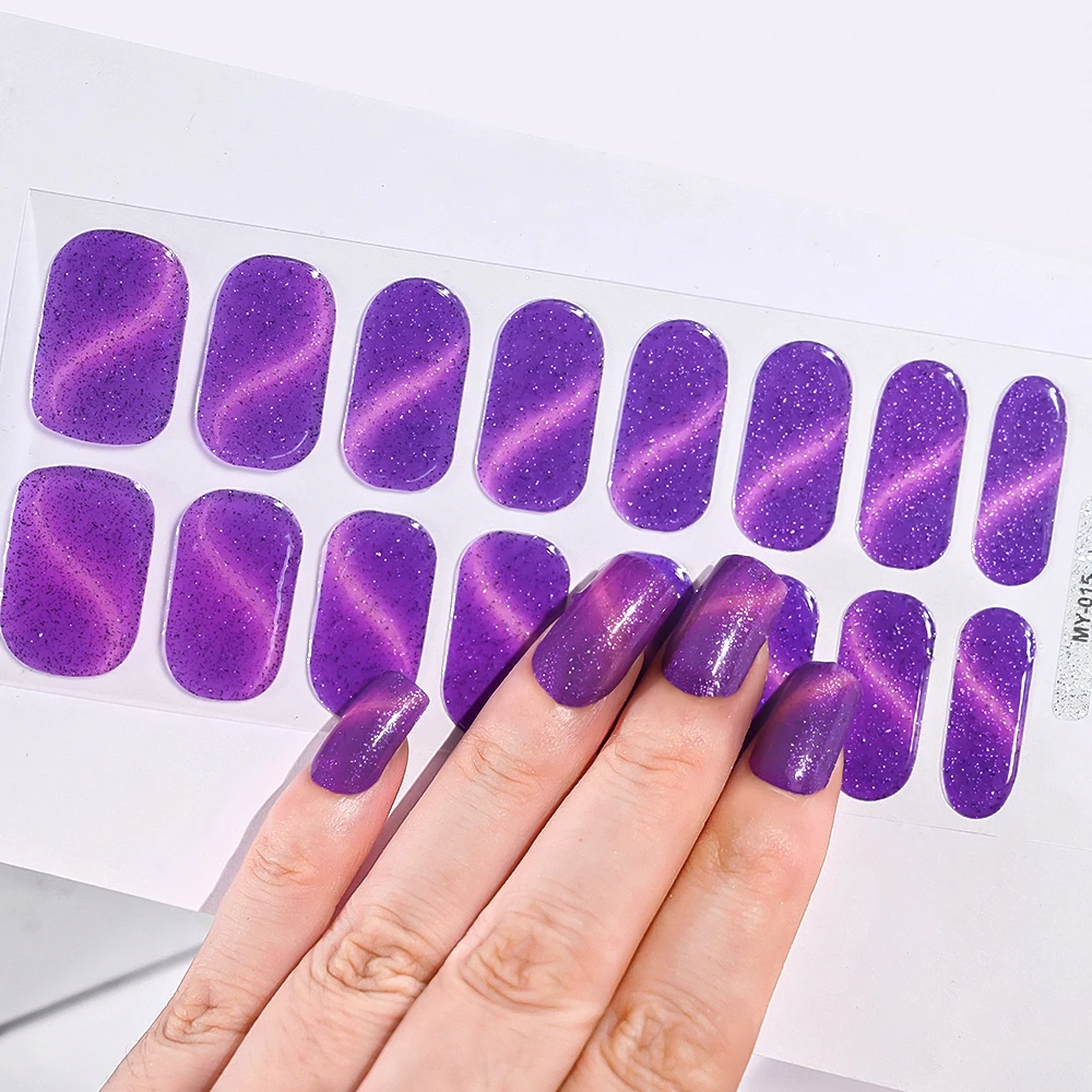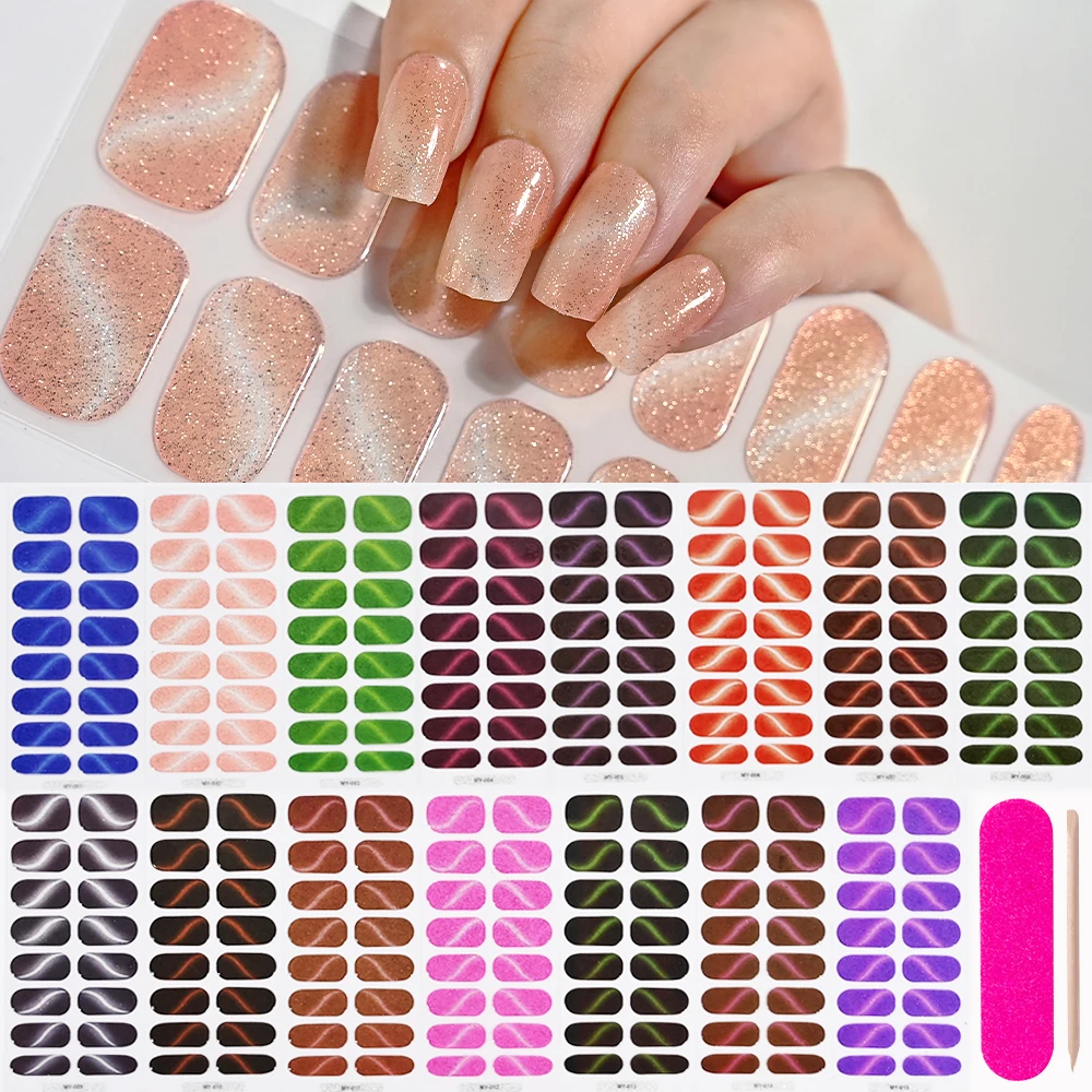 15 Color Cat Eye Effect Semi-Cured Glitter Gel Nail Wraps SelfAdhesive Long Lasting Gel Nail Stickers with Tools Hard In UV Lamp