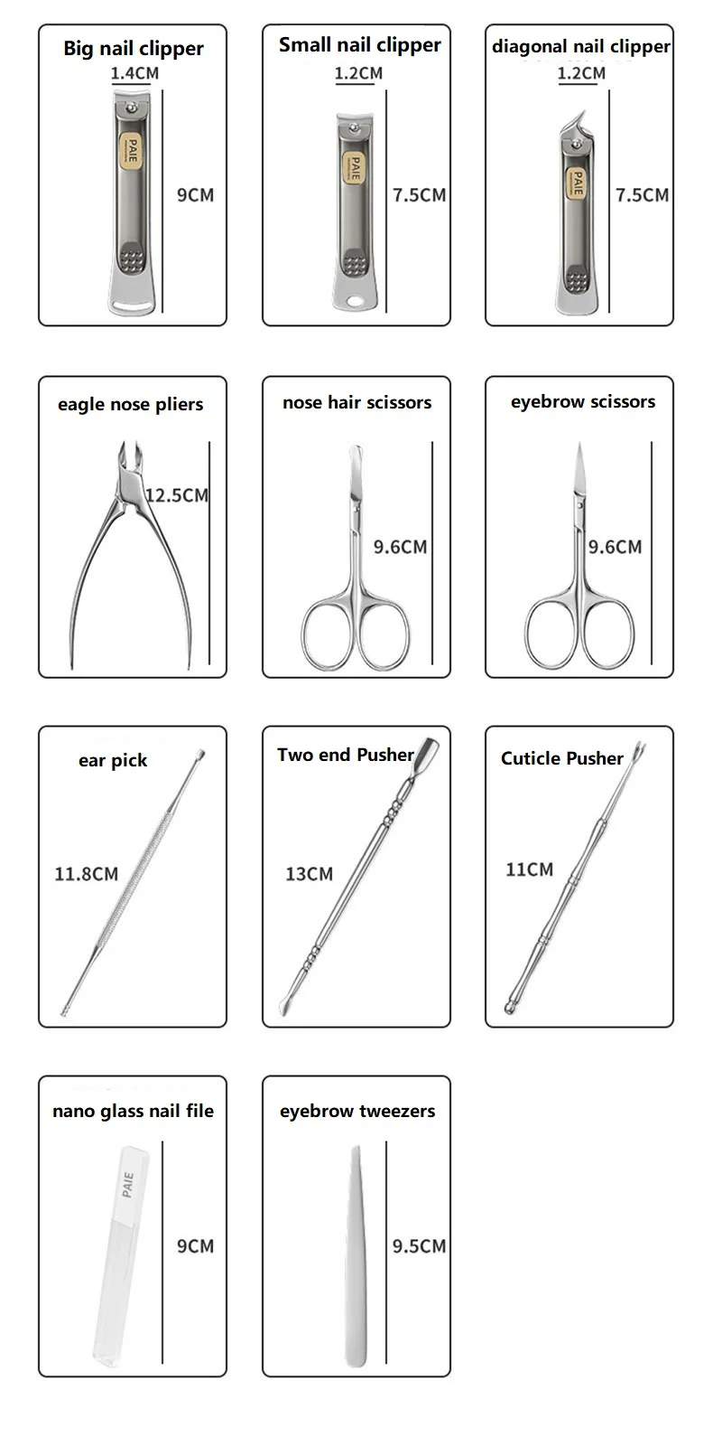 Full set, meet all your requirements of nail trimming and nail care;