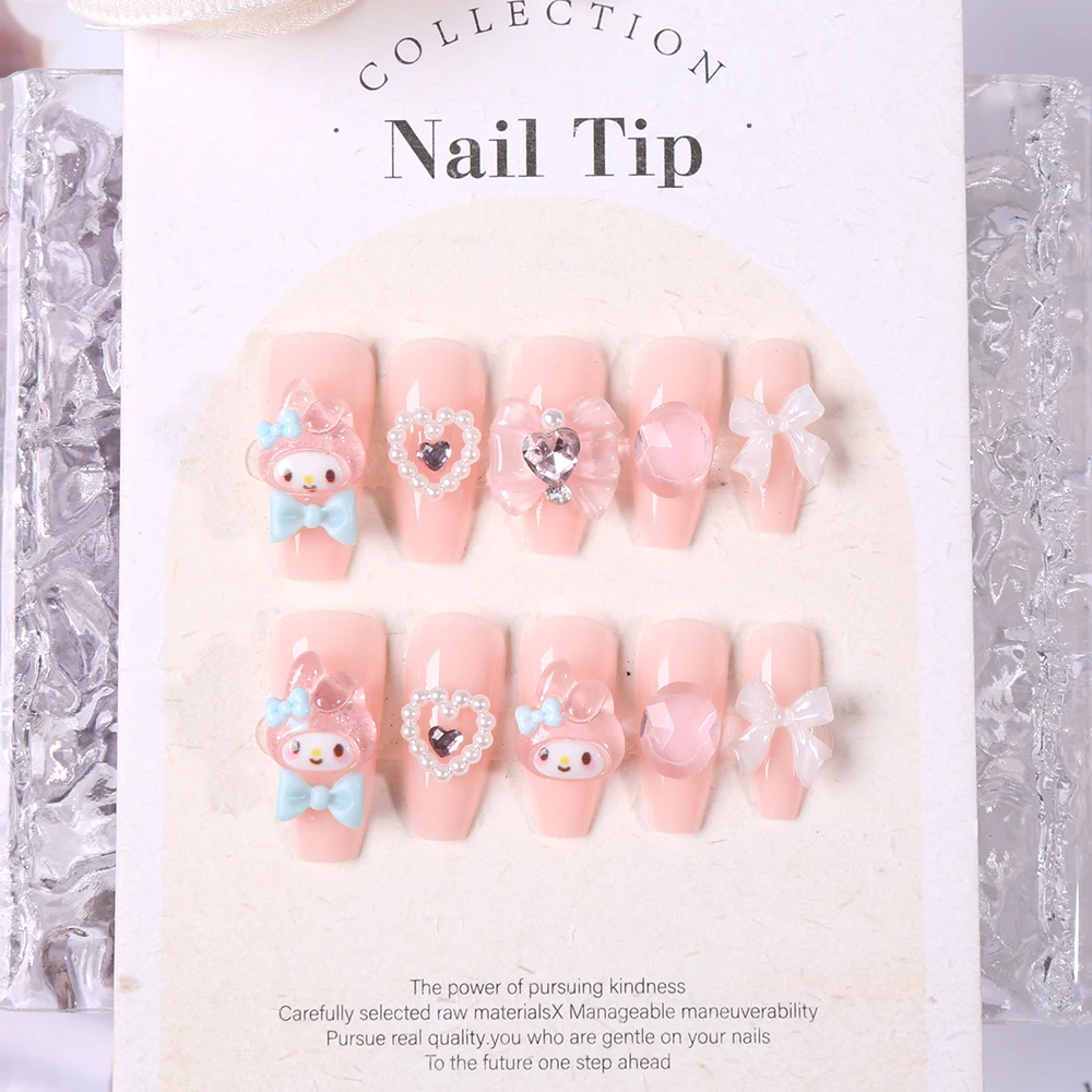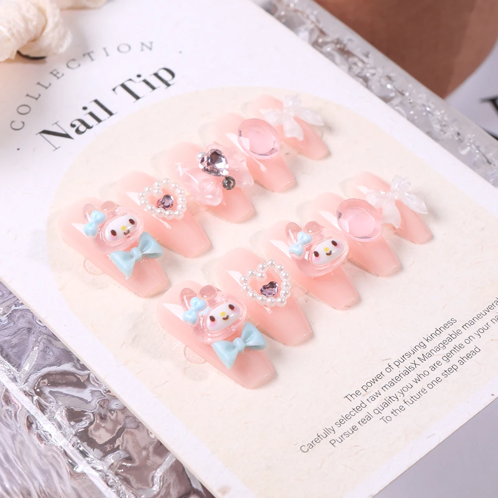 Sanrio Kawaii Pink My Melody Fake Nails 24Pc 3D kuromi Anime Cute Nail Patches False Nail Tips Cartoon Y2K Fashion Press on Nail
